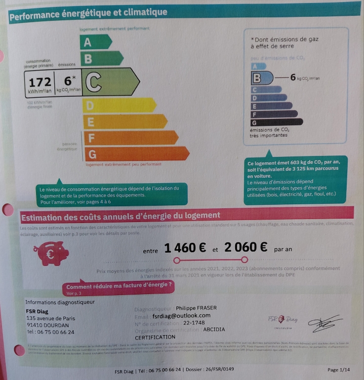 Montant estimé des dépenses annuelles d’énergie pour un usage standard : entre 1460 € et 2060 €/an