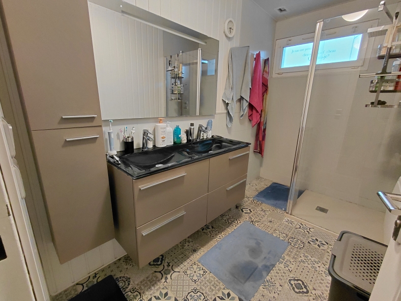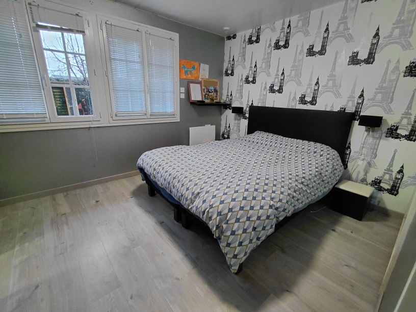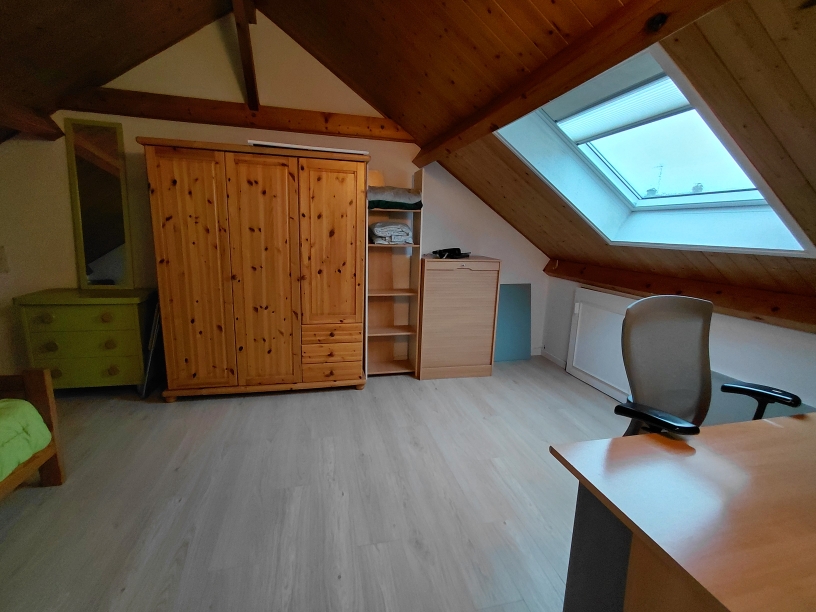 A l’étage vous y trouverez 2 grandes chambres, un point d’eau avec wc et un espace pouvant servir de coin détente (bureau ou salle de jeux….).