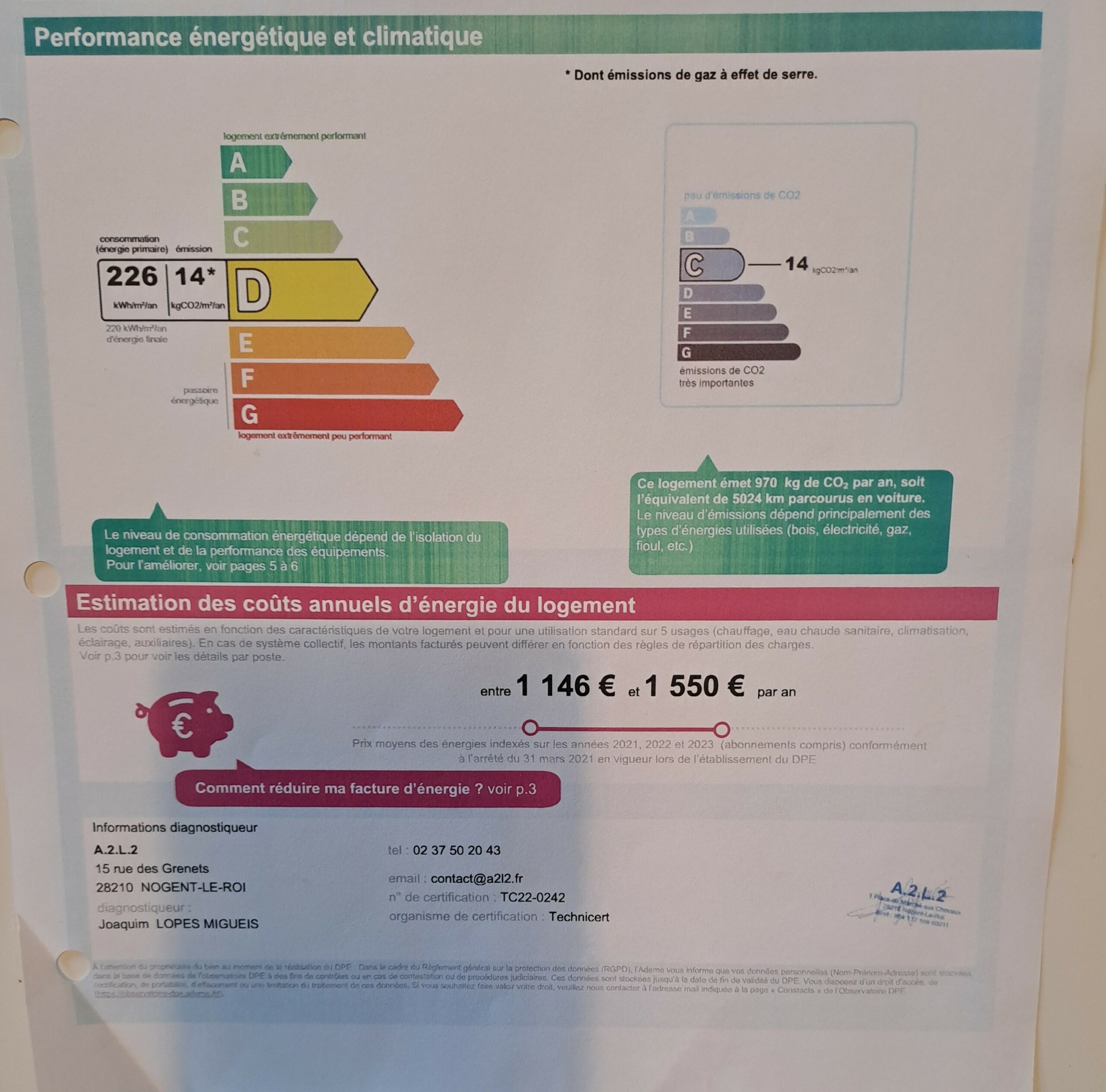 Montant estimé des dépenses annuelles d’énergie pour un usage standard : entre 1 146 € et 1 550 €/an