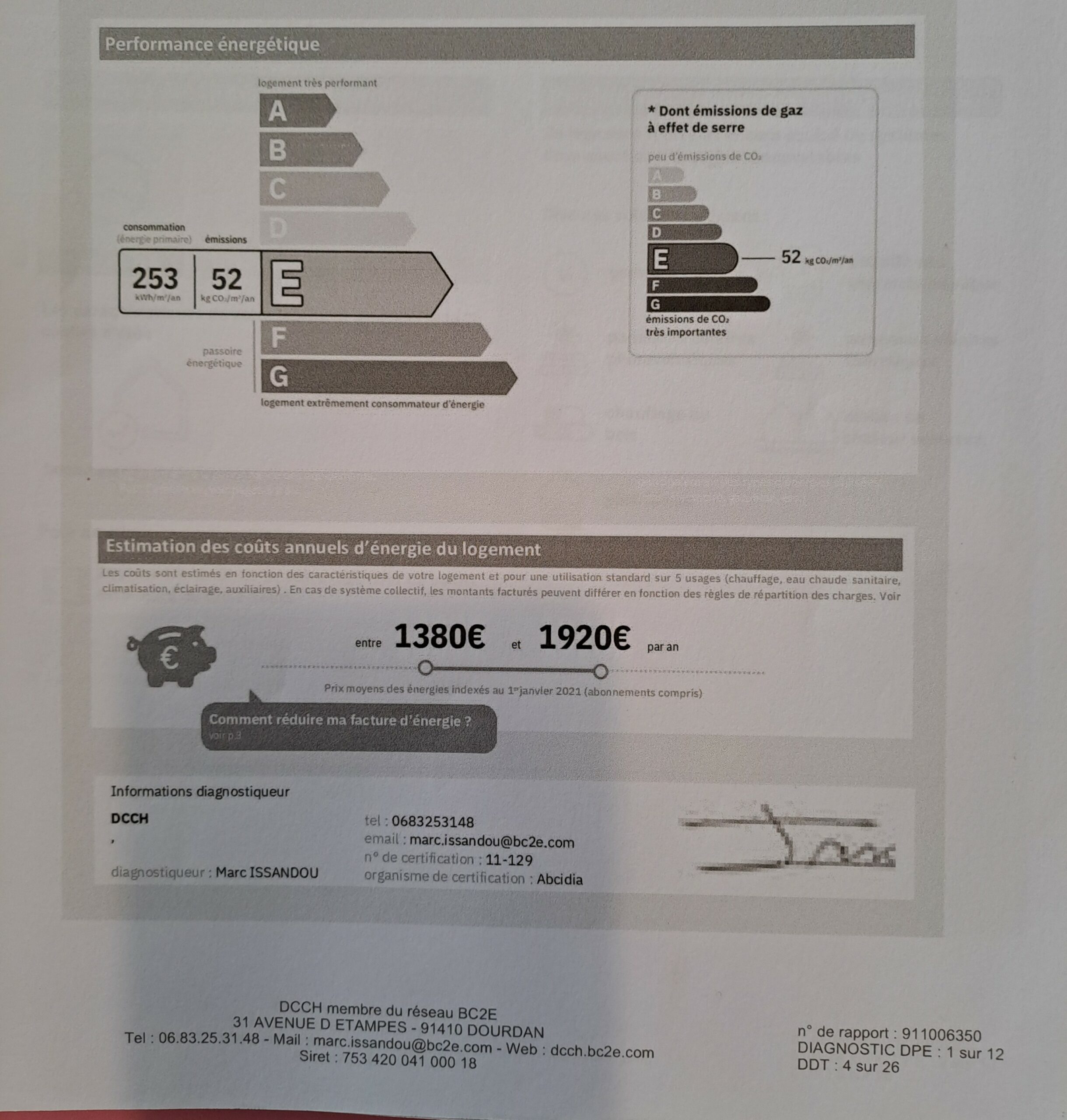 DPE (Diagnostic de Performance Énergétique) : E
