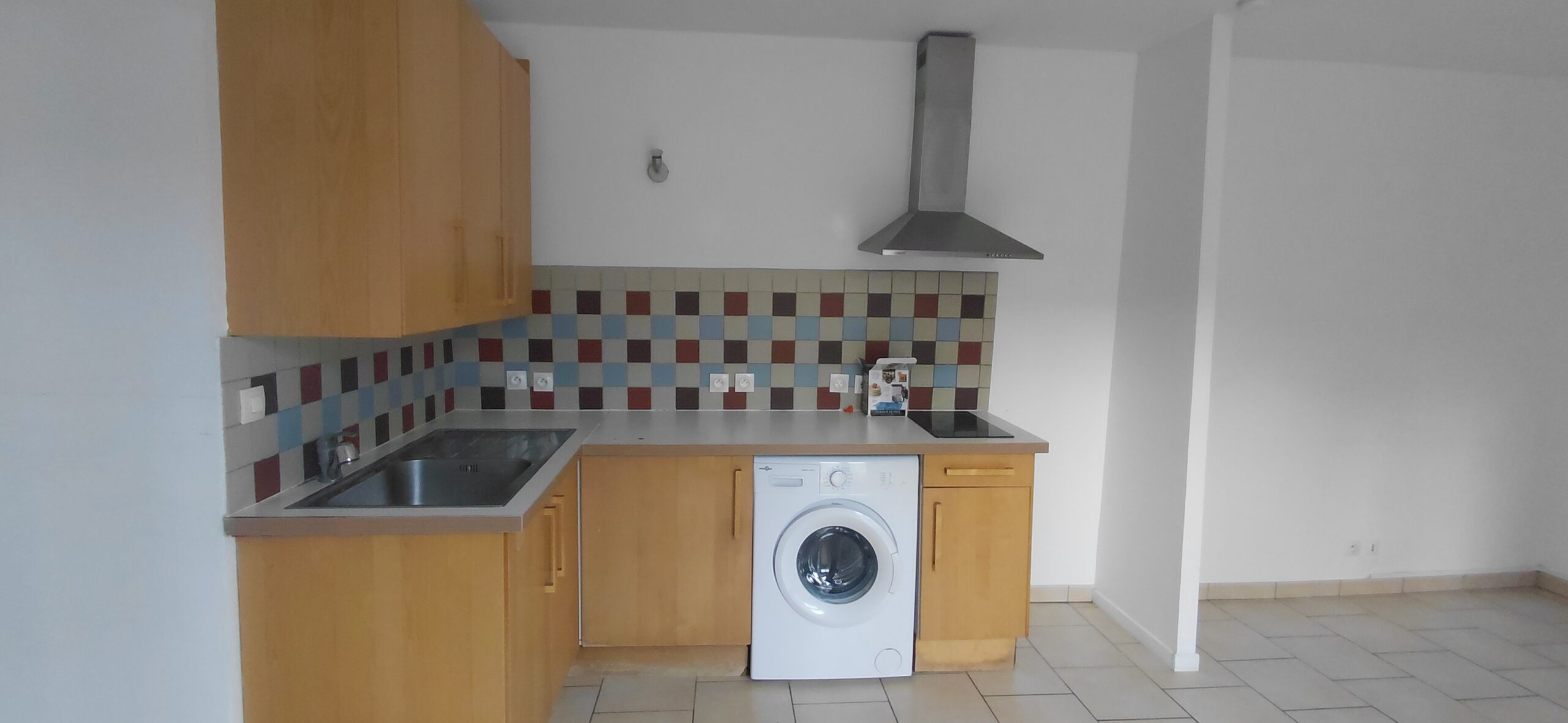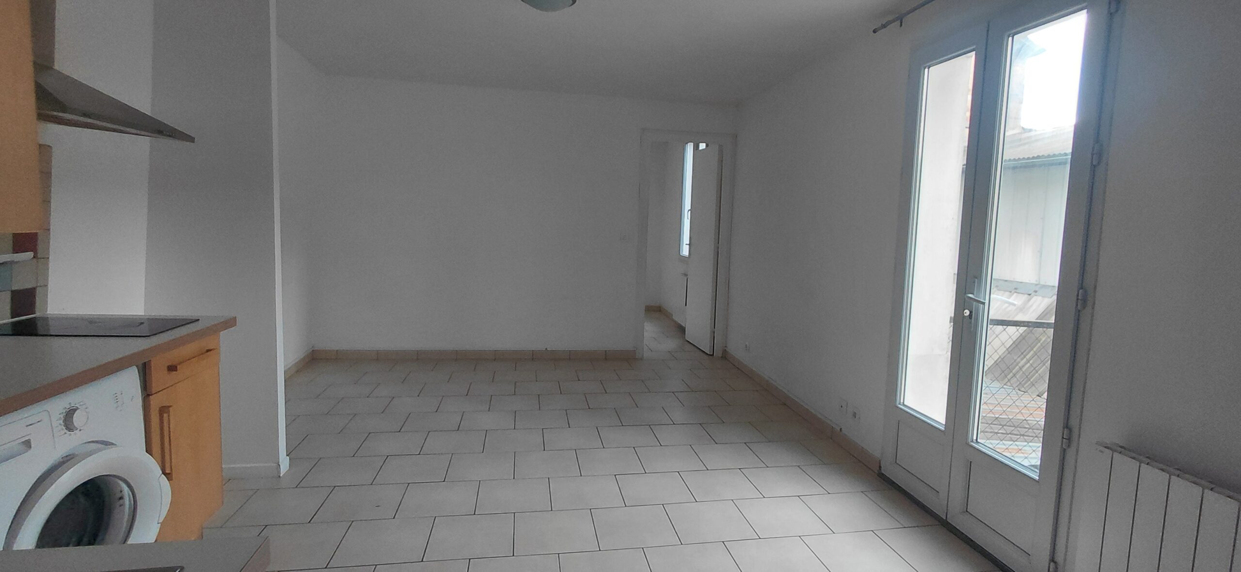 pièce de vie , cuisine ouverte et équipée avec un coin repas , 1 chambre, salle d’eau avec Wc.