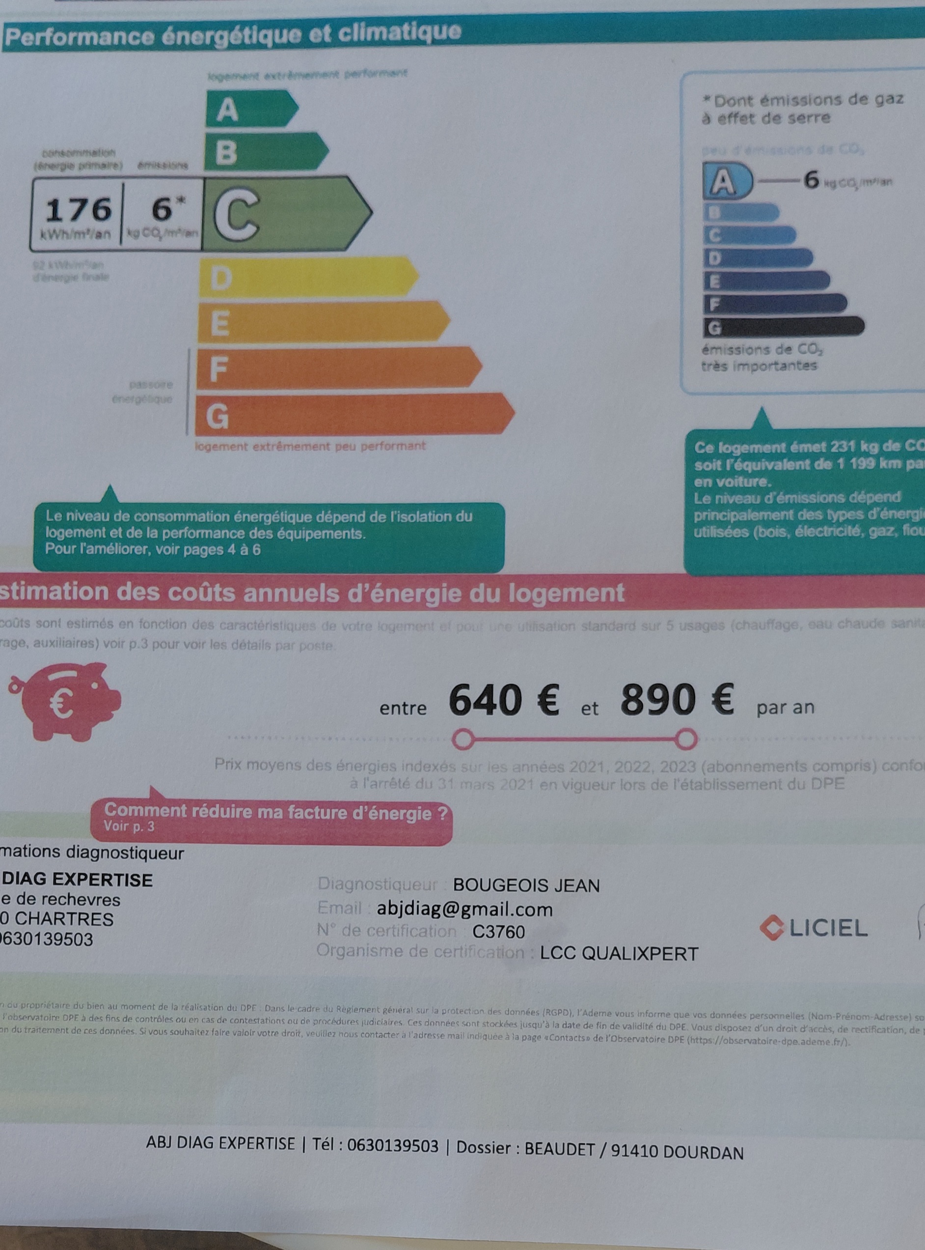 Montant estimé des dépenses annuelles d’énergie pour un usage standard : entre 640 € et 890 €/an