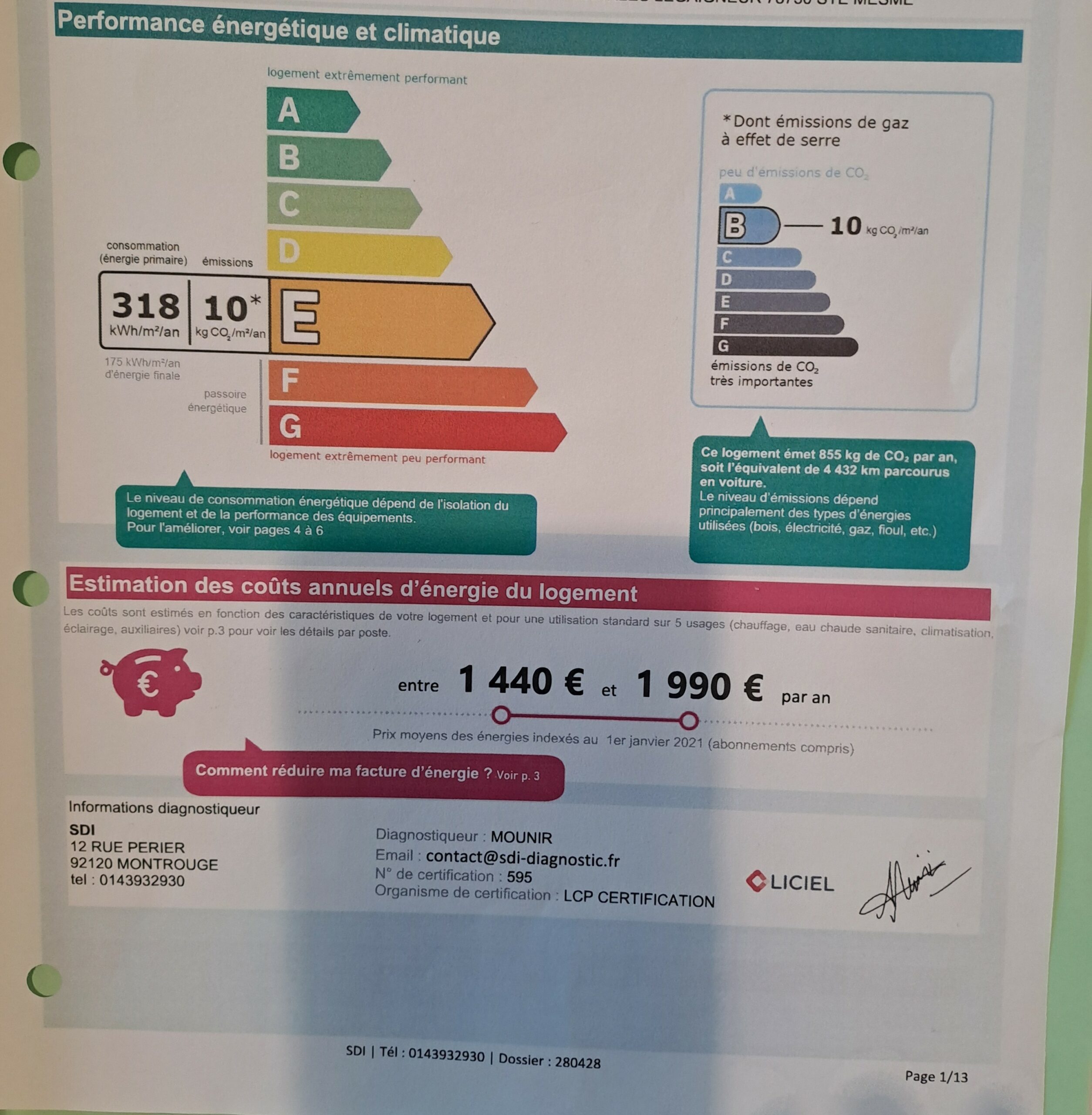 Montant estimé des dépenses annuelles d’énergie pour un usage standard : entre 1 440 € et 1 990 €/an