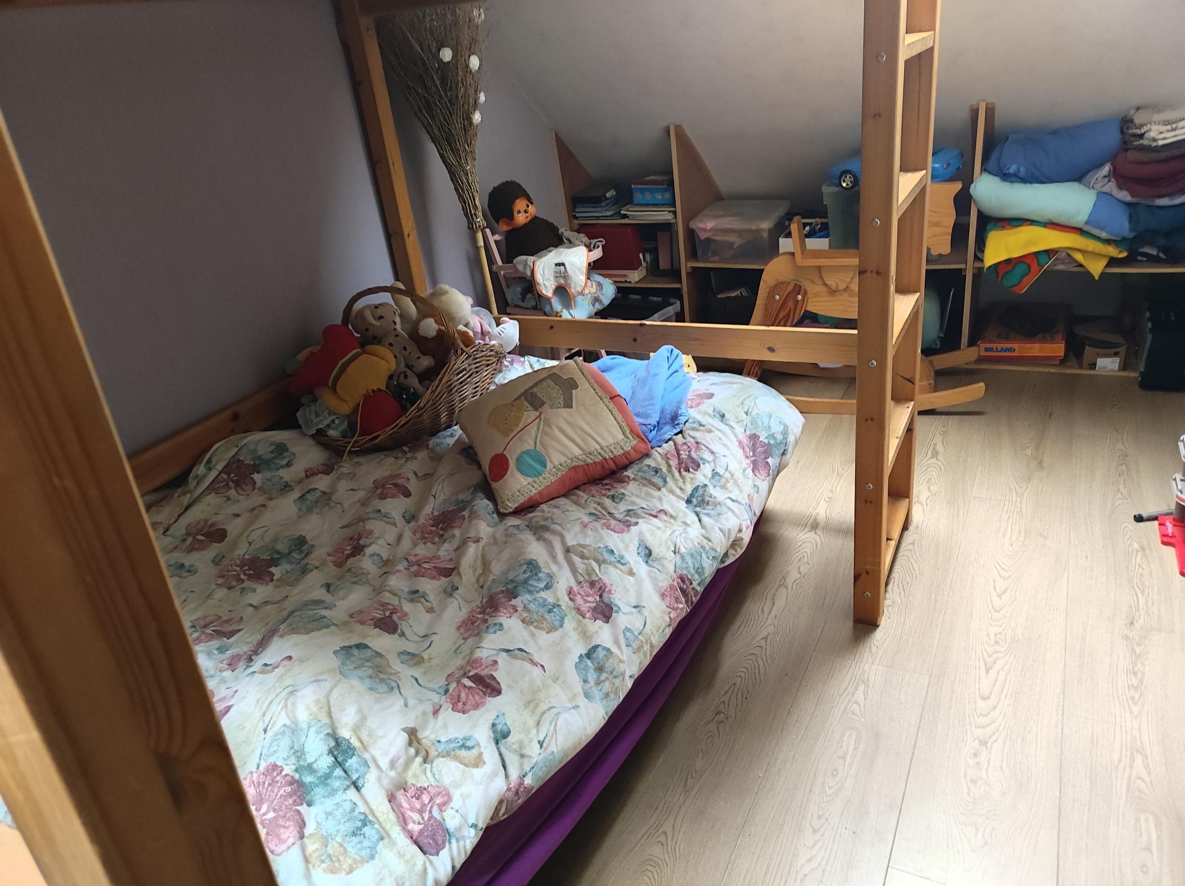 Au 1er étage, un salon/salle à manger avec sa cheminée, une cuisine indépendante aménagée donnant accès au jardin, une salle de bains avec douche, un wc indépendant.