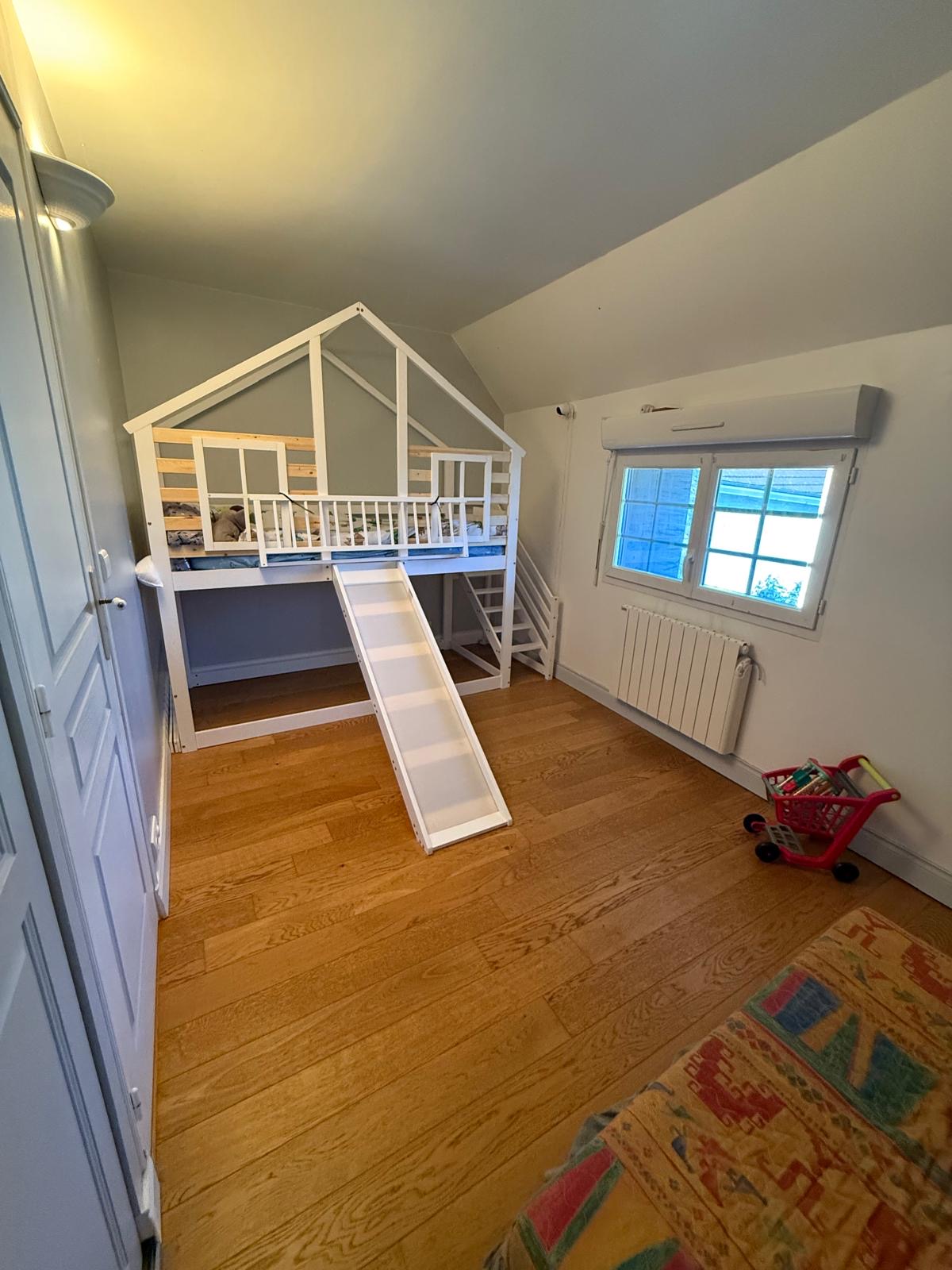 A l’étage, un grand palier pouvant servir de bureau va vous desservir 4 chambres, une salle de jeux et la possibilité d’une salle d’eau ou un dressing selon vos besoins.