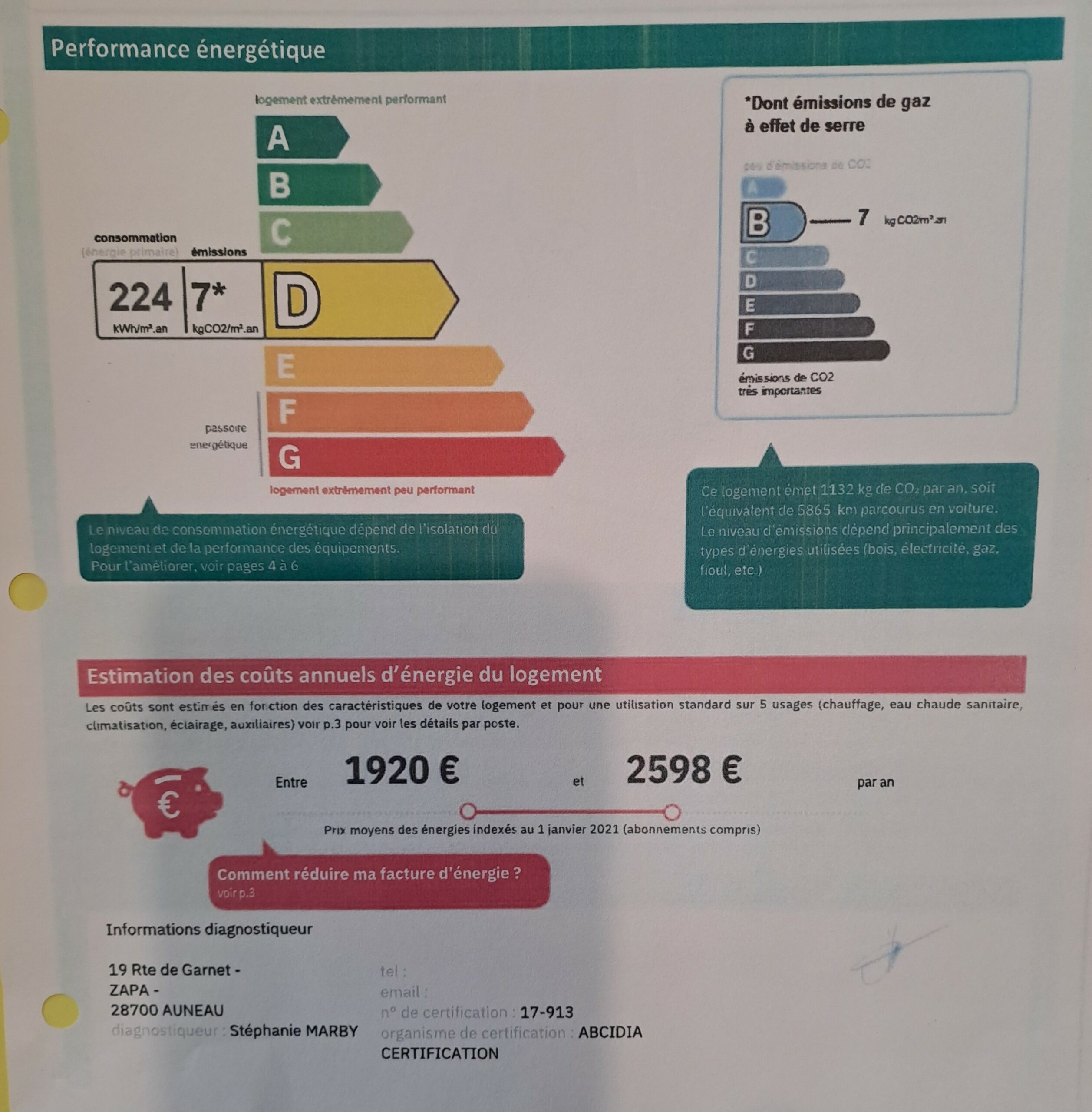 Montant estimé des dépenses annuelles d’énergie pour un usage standard : entre 1 920 € et 2 598 €/an