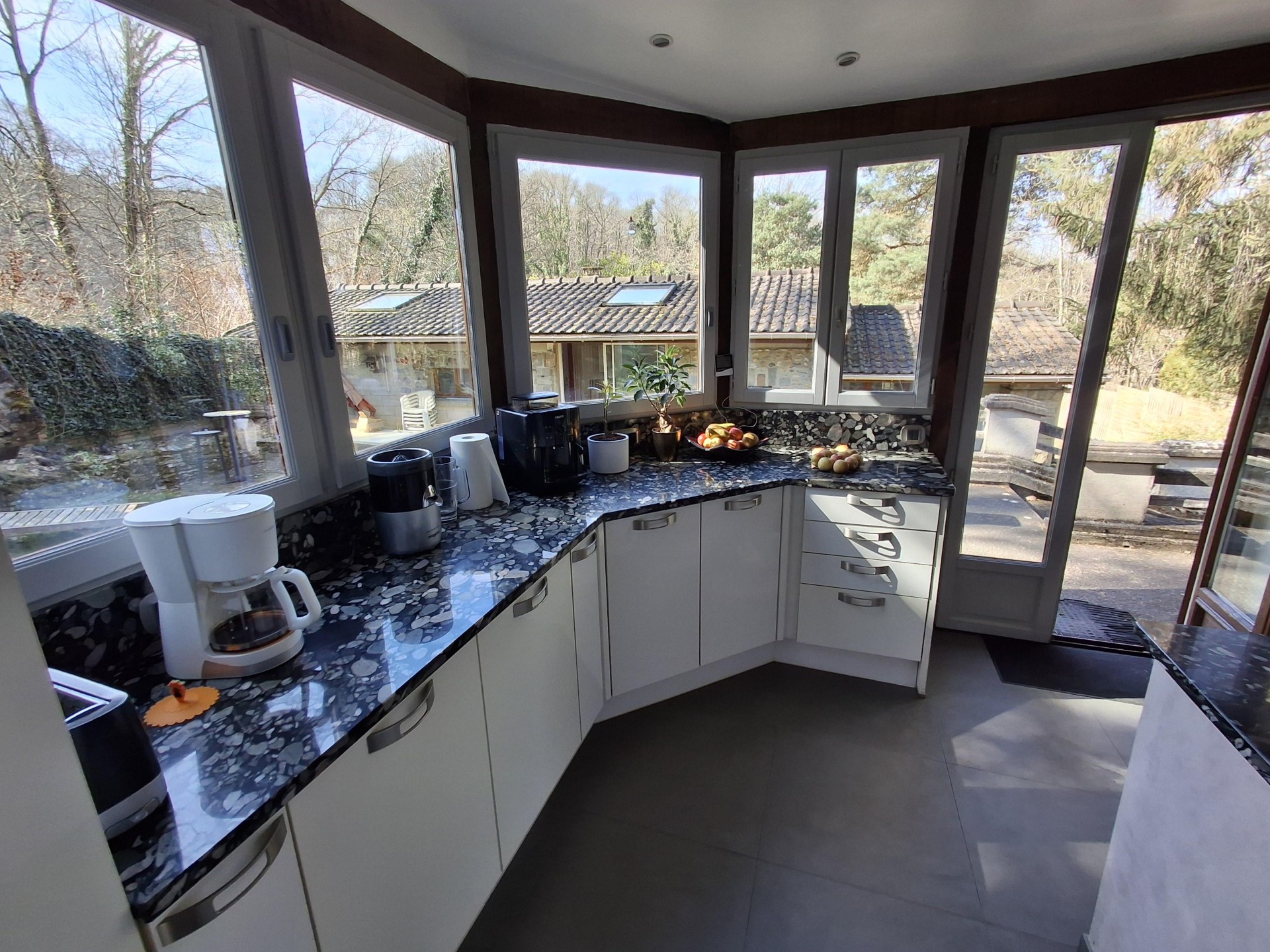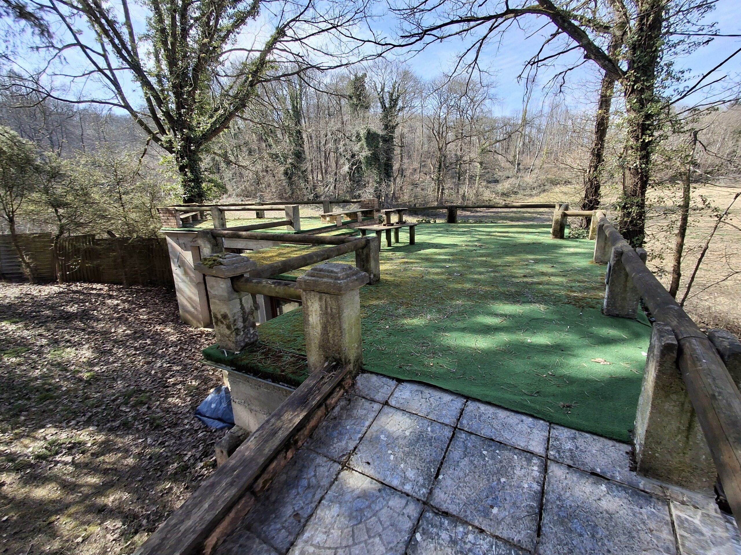 Un atelier au fond du jardin complète ce bien avec sa cave ainsi qu’une magnifique terrasse au dessus donnant sur la plaine et la forêt.