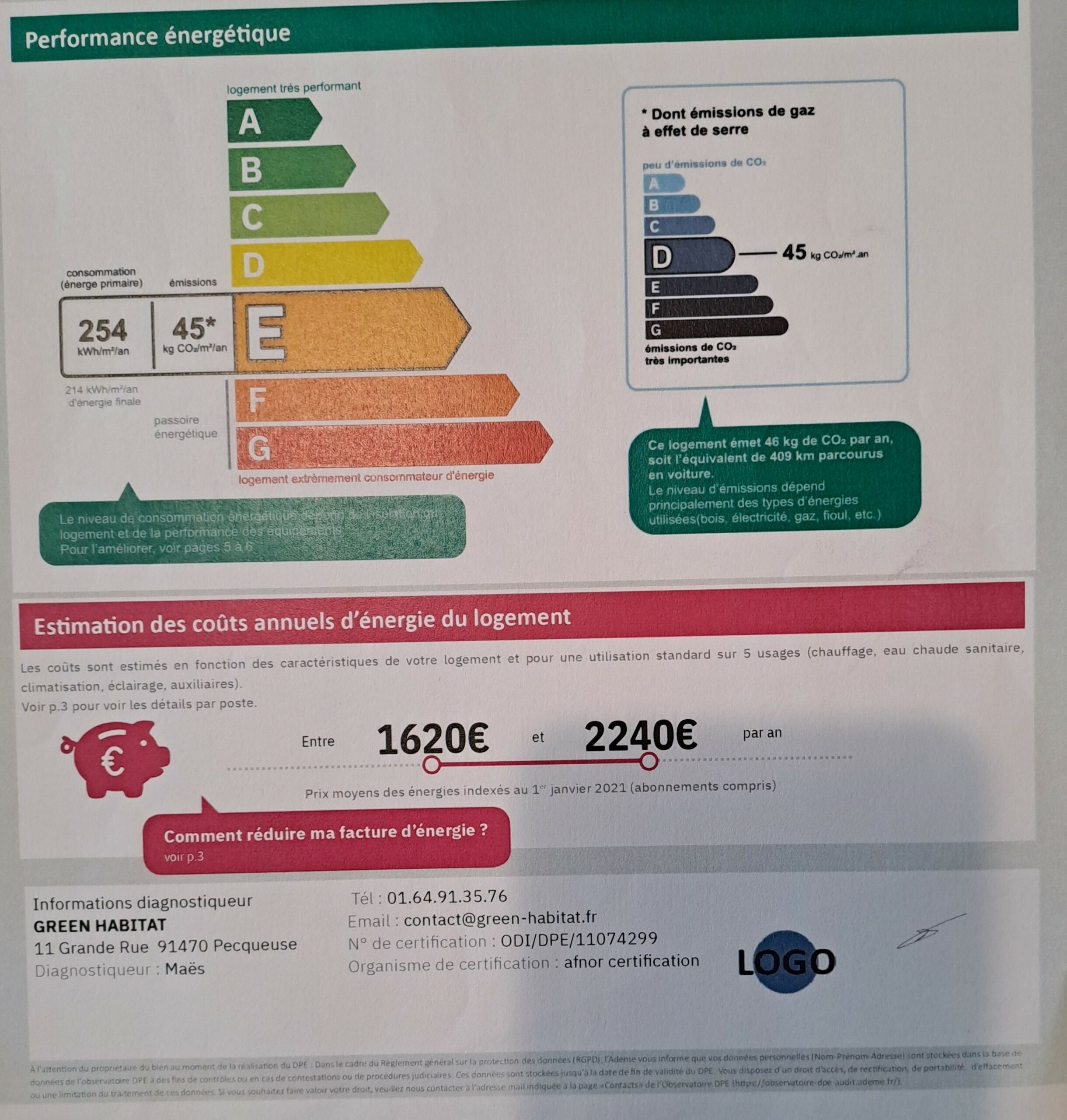 Montant estimé des dépenses annuelles d’énergie pour un usage standard : entre 1 620 € et 2 240 €/an