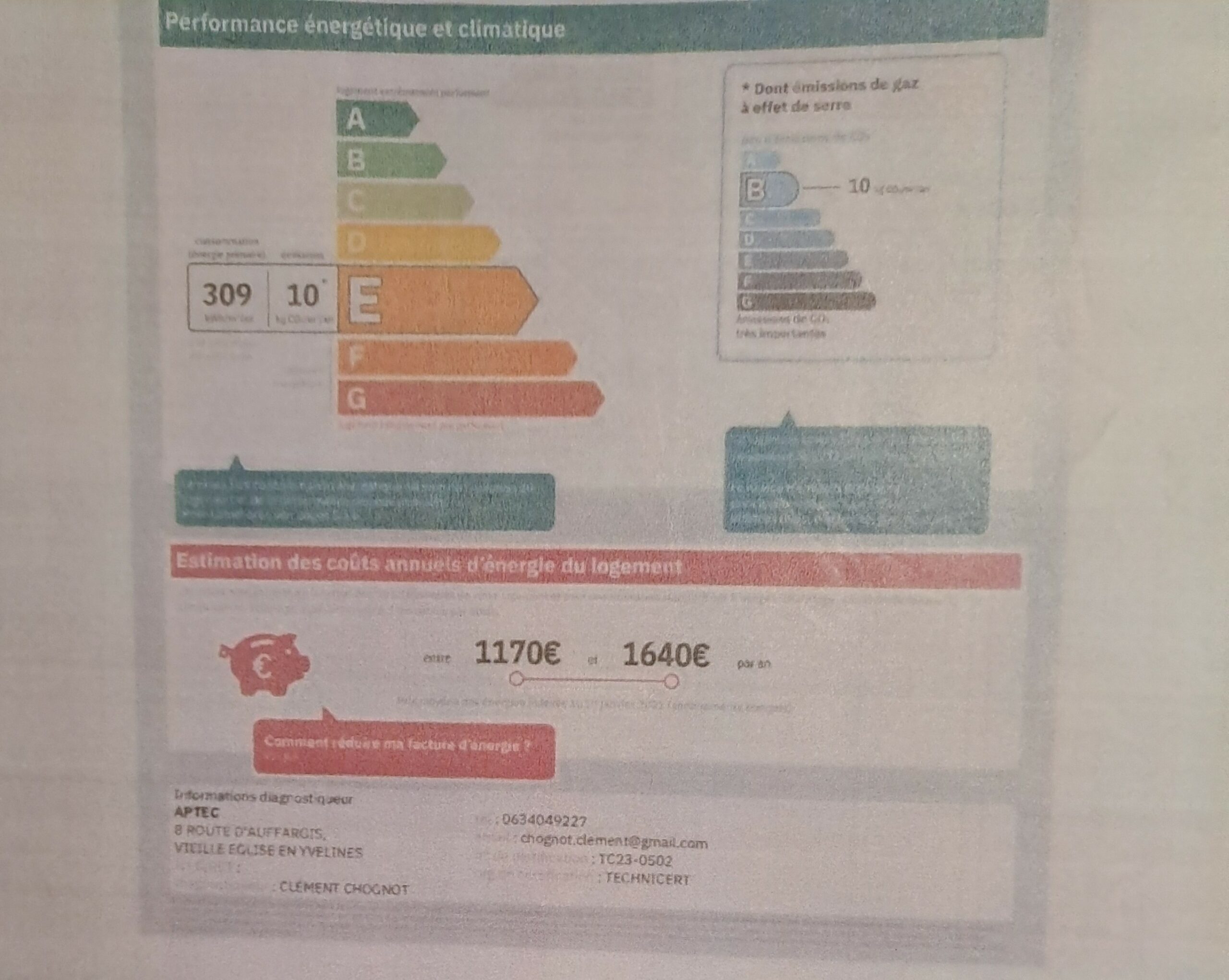 Montant estimé des dépenses annuelles d’énergie pour un usage standard : entre 1 170 € et 1 640 €/an