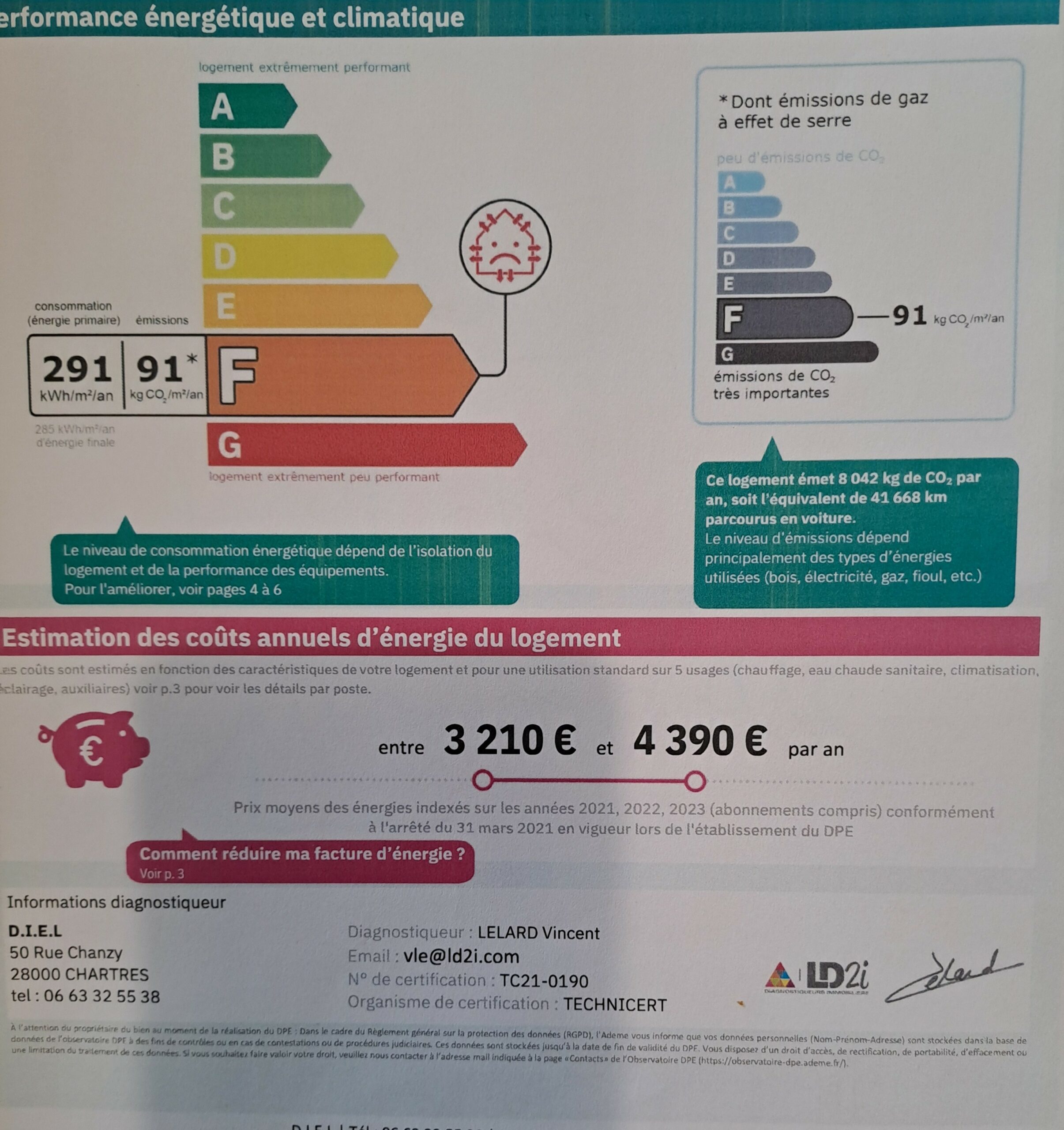 Montant estimé des dépenses annuelles d’énergie pour un usage standard : entre 3 210 € et 4 390 €/an