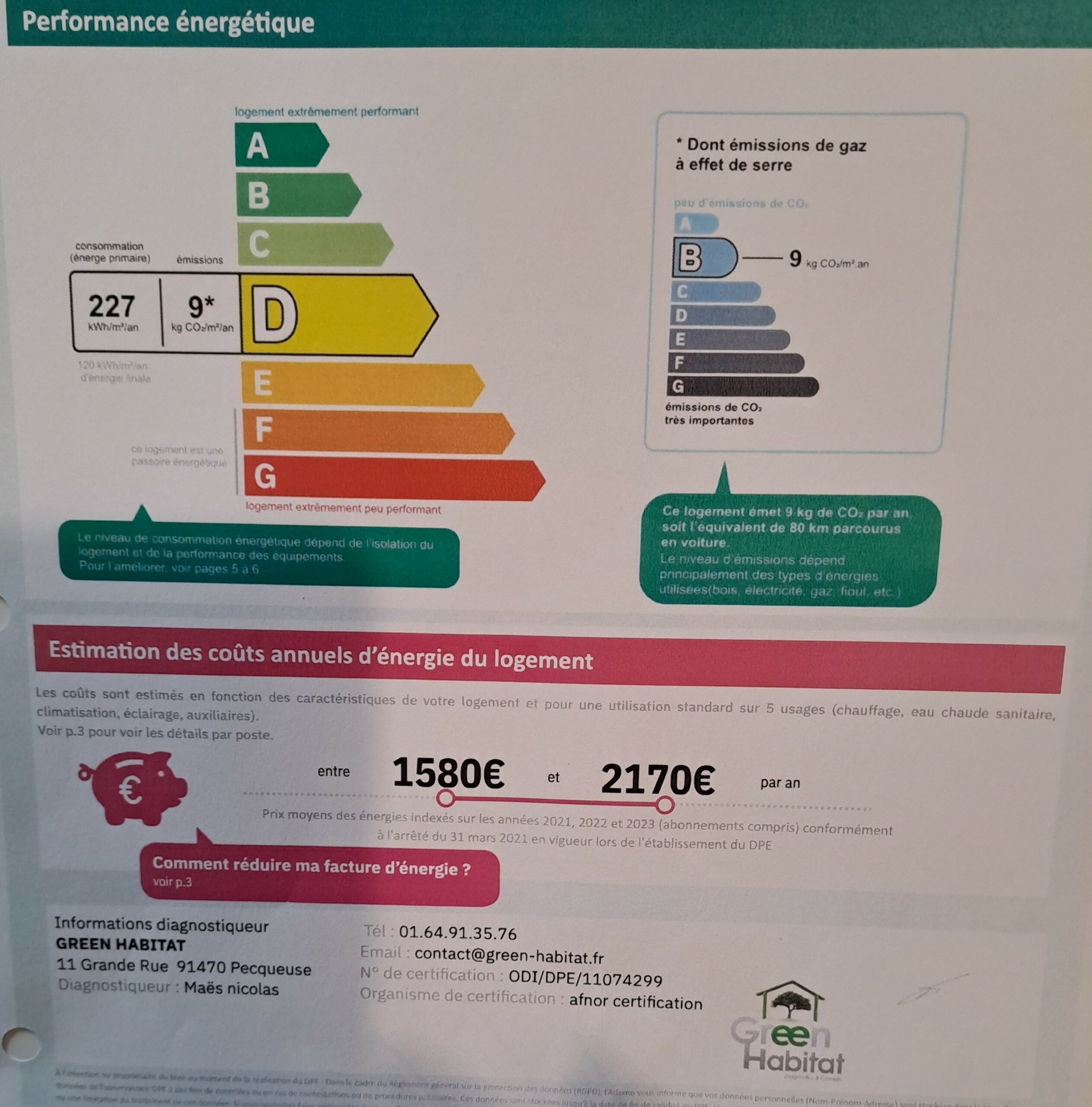 Montant estimé des dépenses annuelles d’énergie pour un usage standard : entre 1580 € et 2 170 €/an
