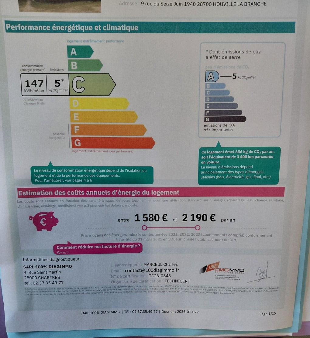 Montant estimé des dépenses annuelles d’énergie pour un usage standard : entre 1580 € et 2190 €/an