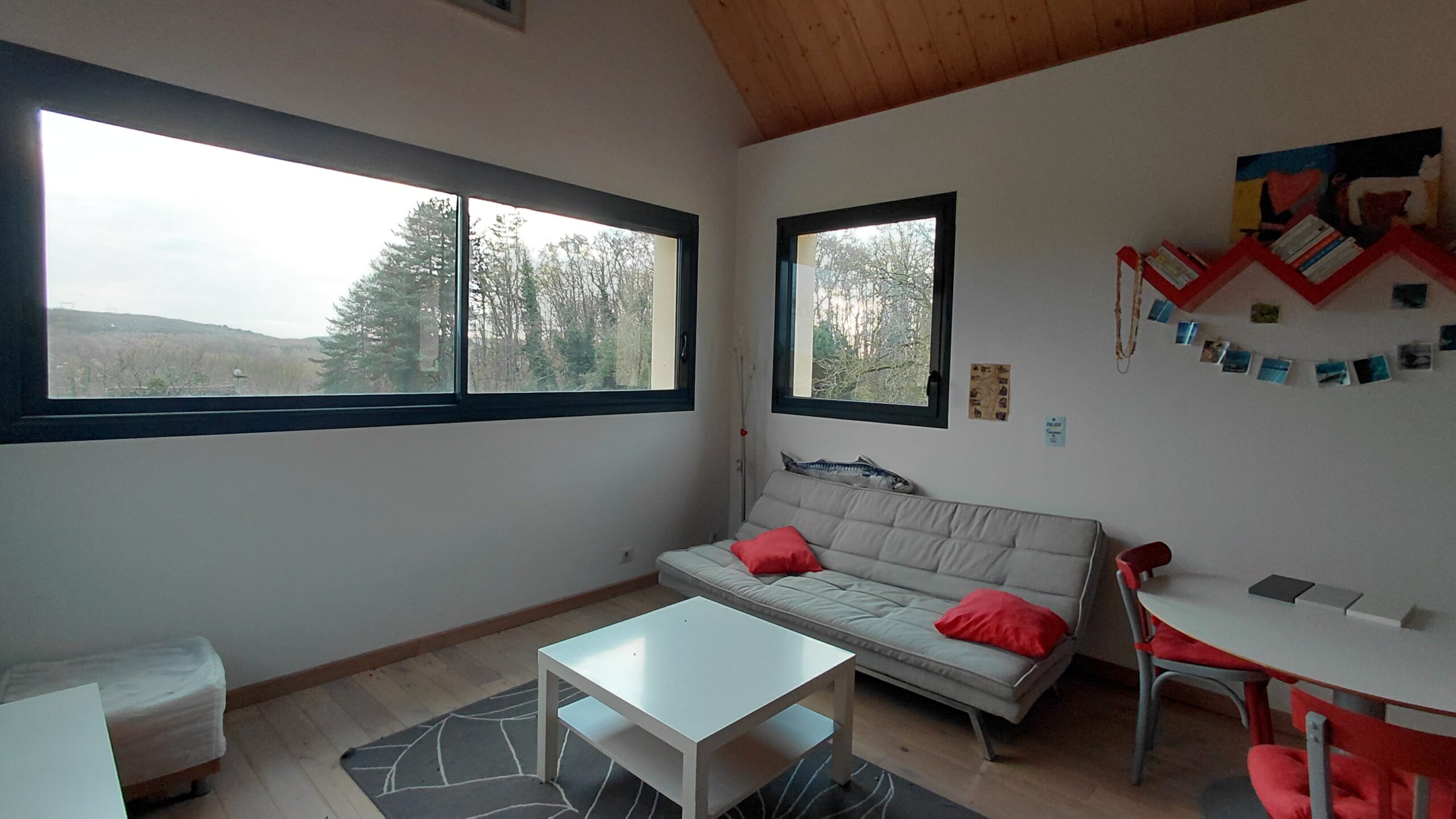 Elle vous offre un vaste hall d’entrée, d’un côté, vous retrouverez une entrée desservant un magnifique salon/salle à manger avec ses baies vitrées donnant une vue imprenable, pour vos soirées d’hiver, une magnifique cheminée, une cuisine totalement aménagée et équipée, un wc et son espace bûcher.