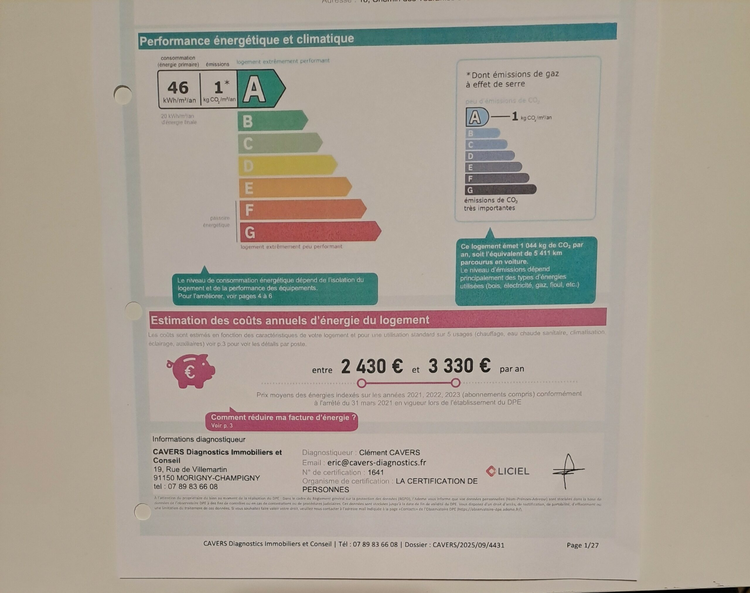 DPE (Diagnostic de Performance Énergétique) : A